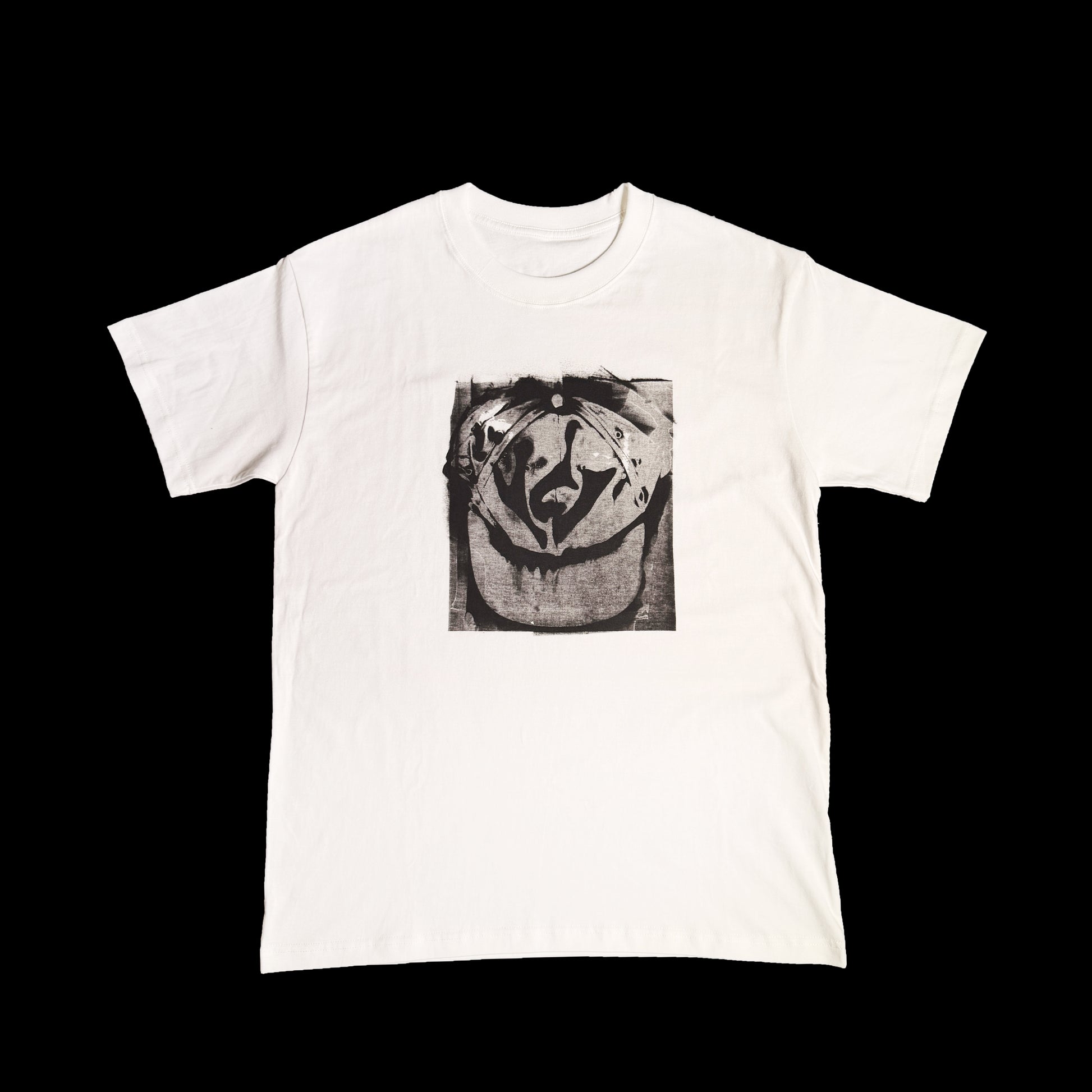 Two 1/1 White Tees made from the ink remnants of printing a blank screen on a flattened ballcap. These bad boys are certified fresh and truly one of a kind (even though there are two lmao).